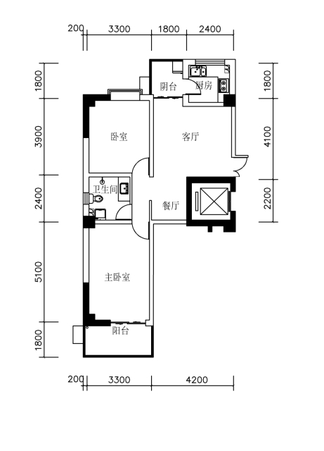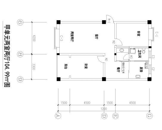 B3戶型100平米二室二廳一廚一衛(wèi)