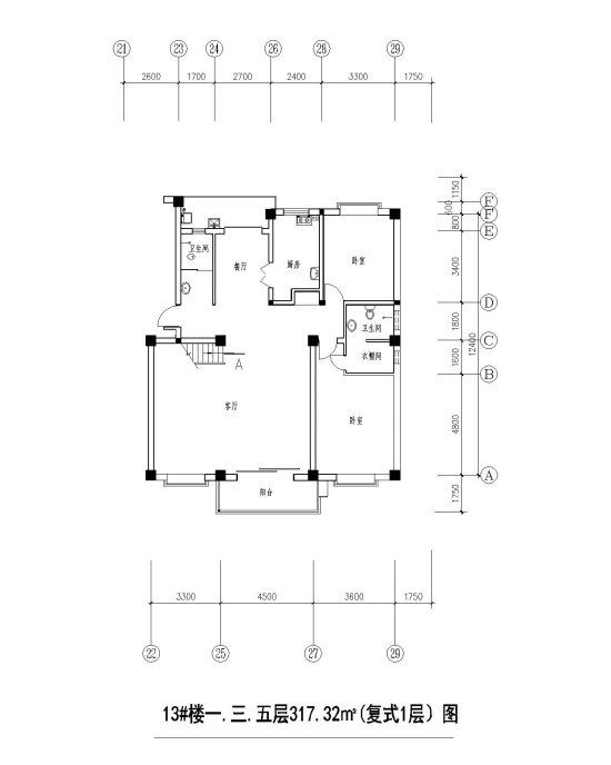 E 2戶型317平米五室三廳一廚四衛(wèi)