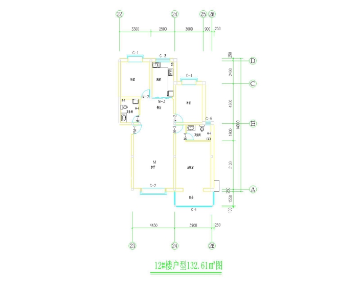 C2戶型132平米三室二廳一廚二衛(wèi)