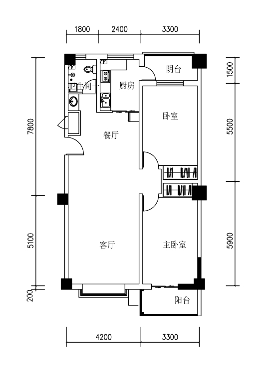 A2戶型69平米二室一廳一廚一衛(wèi)